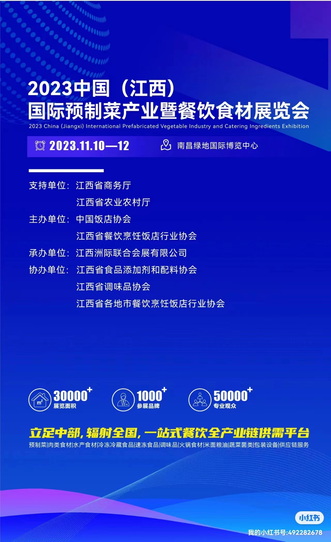 2023中国(江西)餐饮食材展暨预制菜产业博览会”将于11月24日-26日在江西南昌绿地国际会展中心隆重举行!本次展会由江西南昌建业鑫瑞展览有限公司承办,1000家餐饮品牌 ,聚焦预制菜革命,旨在深度探索和思考预制菜行业,助推预制菜赛道跑出国民级品牌。