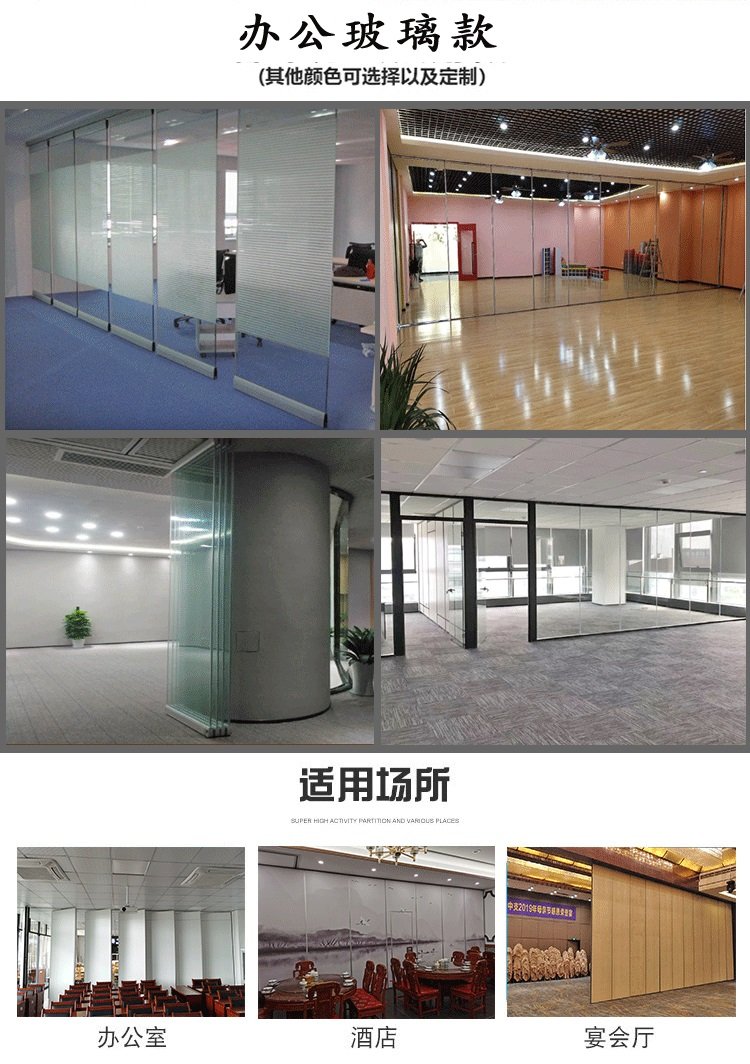 公司产品涉及3大系列多种型号,可满足客户不同需求。主营产品有:主营产品有:酒店活动隔断、宴会厅移动隔断、会议室活动屏风、展览馆折叠屏风、电动活动屏风、玻璃移动隔断、钢铝防火移动隔音墙等。