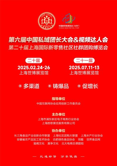第六届中国私域团长大会&视频达人会暨第二十届上海国际新零售社区社群团购博览会将于2025年2月24-26日在上海世博展览馆继续举办